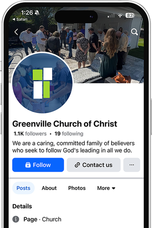 Follow GCOC on Facebook for service livestreams, event info, and to stay up to date on everything happening at Greenville Church of Christ!